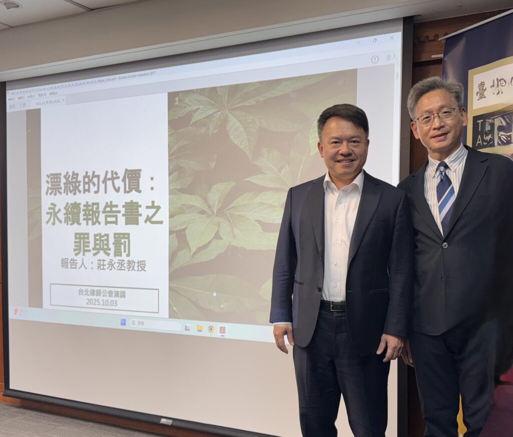 Mike Lu hosted the seminar of “The Crimes and Penalties of Sustainability Report” delivered by Dean Yung-Cheng Chuang of School of Law, Soochow University on October 3, 2025 at the Taipei Bar Association.